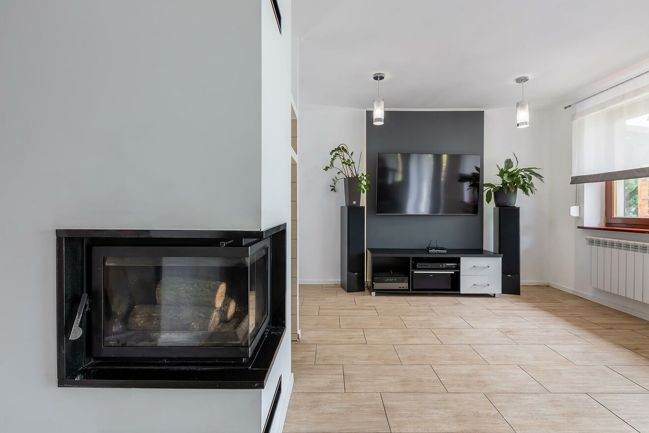 Salon z kominkiem bo Netflix to jedno, ale ogień to magia