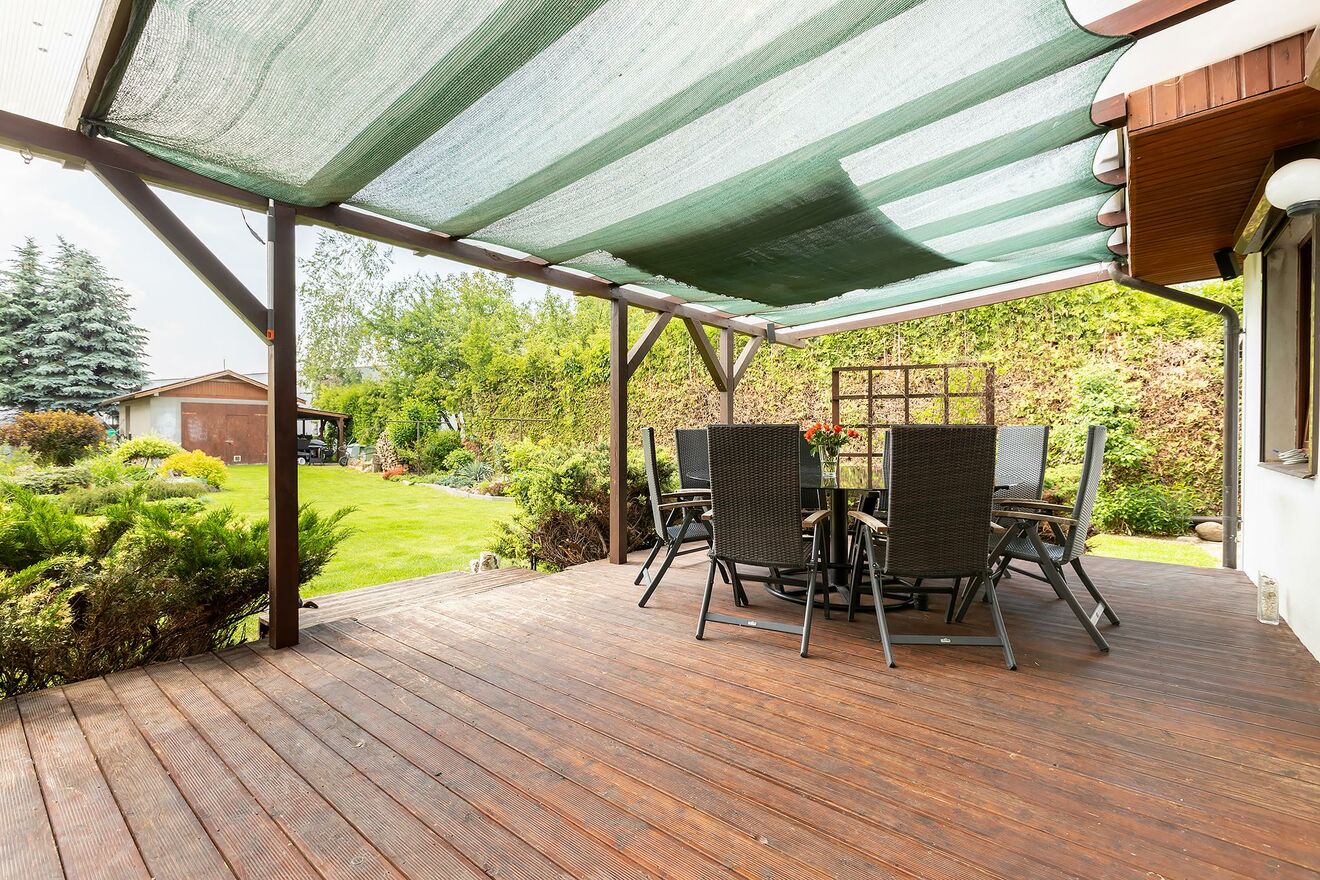 Taras od ogrodu idealny na prosecco, grill i zachody słońca